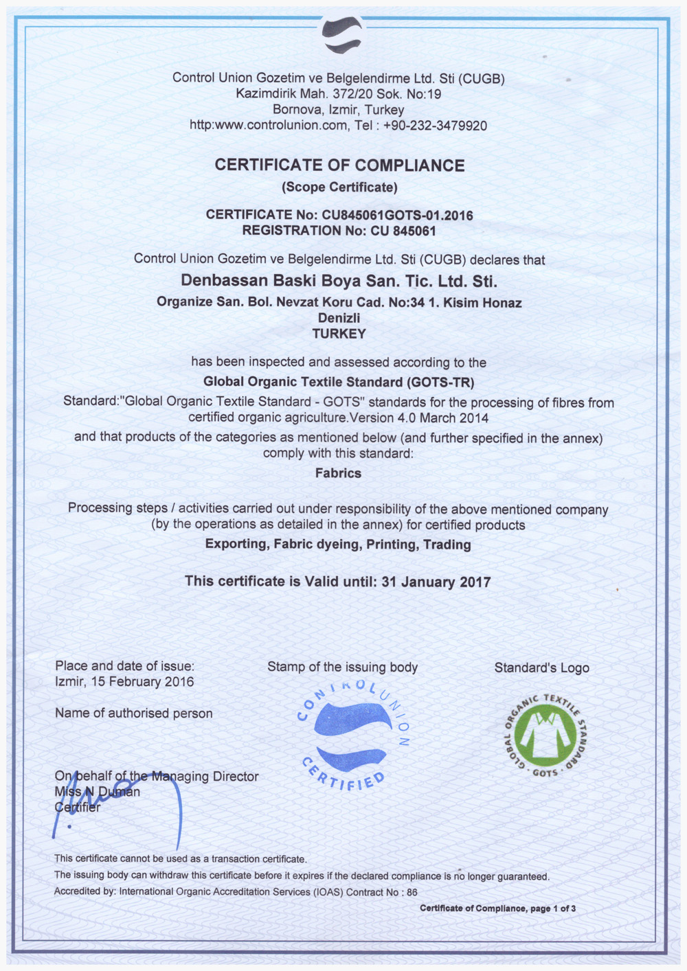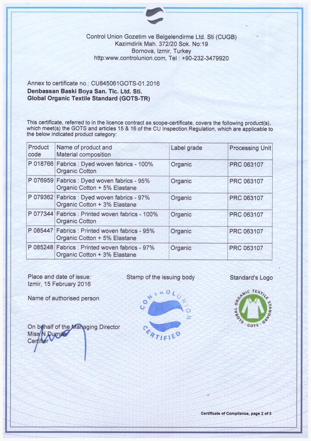 Organize Sanayi bölgesi Fahri Karaca Cad. No:2/1 1. Kısım Denizli / Turkey